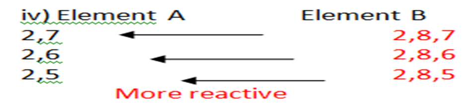 iv)The elements between group 3 and group 12 are placed between reactive metal and non metal .These elements are called transition metal .These element are also called d-block elements or these elements have variable valency .
